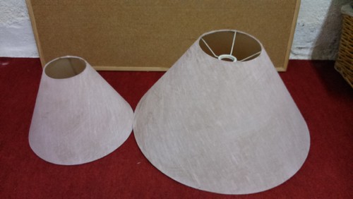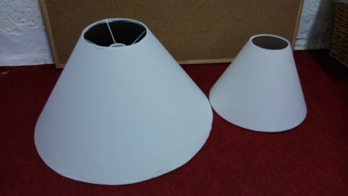 O pequenino consegui forrar por cima do tecido antigo e não se nota nada, o abajur maior teve de ser feito de novo. Ainda experimentei forrar por cima do antigo, mas notavam-se as manchas.