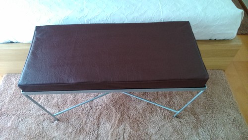 Surgiu a ideia de por um banco de apoio, para podermos colocar a roupa ao fim do dia. O problema é que esses bancos são caríssimos, principalmente os de capitoné em pele ou napa!
